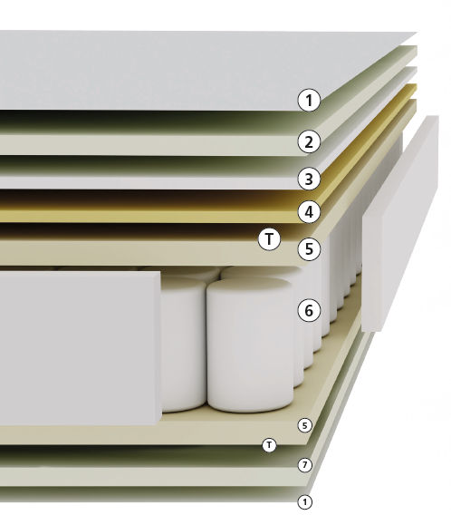 5Komfortní tlumící vrstva s vysokou hustotou významně prodlužující životnostmatrace tím, že zamezuje proležení komfortních vrstev na pružinovém jádru